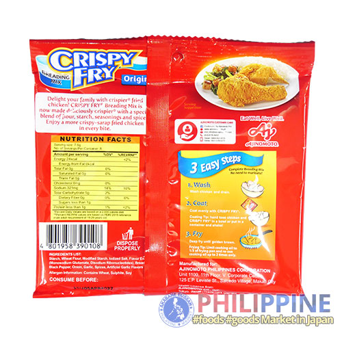 Ajinomoto Crispy Fry Mix Original 62g is the trusted breading mix that makes fried chicken irresistibly crunchy and flavorful. With its special blend of seasonings, it coats chicken perfectly for that golden-brown crisp outside and tender juicy inside—easy to cook, loved by the whole family.