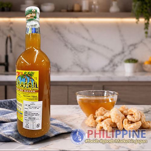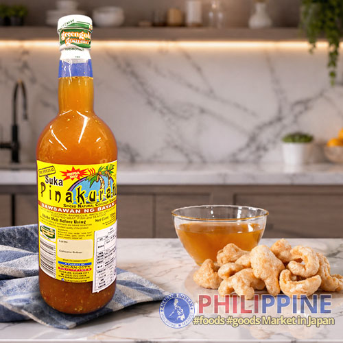A ready-to-use Filipino vinegar infused with a blend of natural spices, chili, garlic, and aromatic ingredients that deliver a sharp, tangy, and slightly spicy kick.